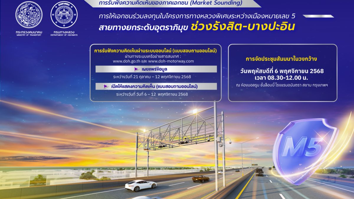 กรมทางหลวงจะดำเนินการเปิดรับฟังความคิดเห็นภาคเอกชน (Market Sounding) สำหรับการให้เอกชนร่วมลงทุนในโครงการทางหลวงพิเศษระหว่างเมืองหมายเลข 5 สายทางยกระดับอุตราภิมุข ช่วงรังสิต - บางปะอินตามประกาศคณะกรรมการนโยบายการร่วมลงทุนระหว่างรัฐและเอกชน เรื่อง หลักเกณฑ์และวิธีการรับฟังความคิดเห็นของภาคเอกชน พ.ศ. 2563 ผ่าน 2 ช่องทาง คือ